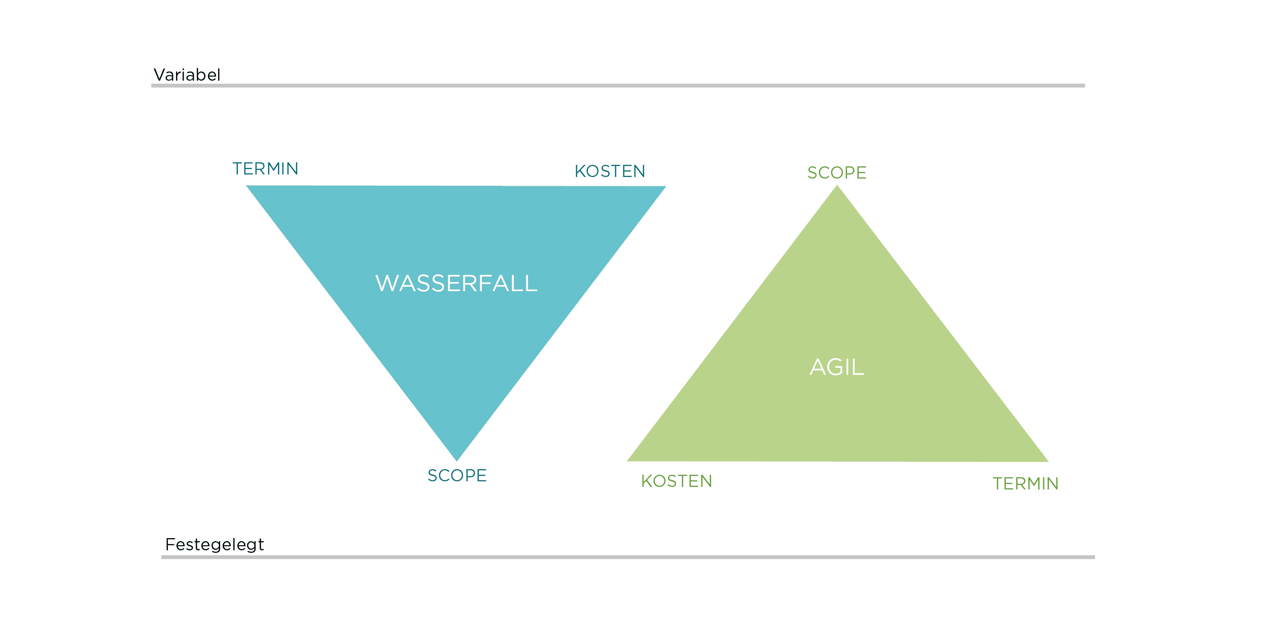 Scrum stellt das gängige Wasserfallmodell des klassischen Projektmanagements buchstäblich auf den Kopf. Während ersteres gleich zu Beginn der Entwicklung einen fertigen Scope formuliert und diesen dann stur abarbeitet, öffnet Scrum im Laufe der Entwicklung den Blick für das, was der Nutzer nachweislich wirklich braucht – und lässt das in die Weiterentwicklung einfließen. Nicht das Befolgen des Projektplans steht im Vordergrund, sondern die Bedürfnisse der Nutzer. Dabei helfen auch empirische Einblicke, die durch das frühe Go-live von einzelnen Arbeitsergebnissen ermöglicht werden.