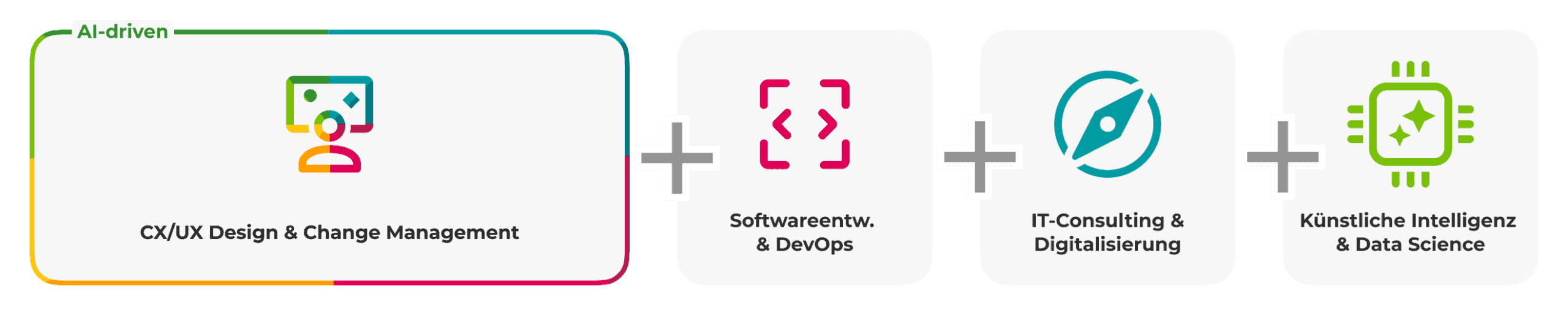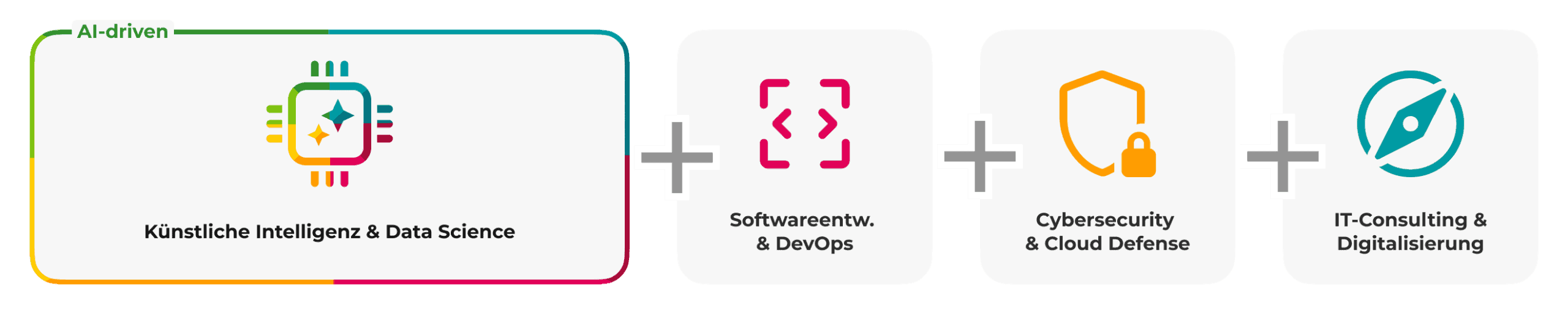 Wir meistern Projekte, schaffen Synergien und gestalten die Zukunft. KI ist Teil unserer DNA. Intelligent, kreativ und maßgeschneidert entwickeln wir Softwarelösungen, die mehr leisten, als Sie erwarten und so zu einem echten Erfolgsfaktor für Ihre Unternehmensziele werden.