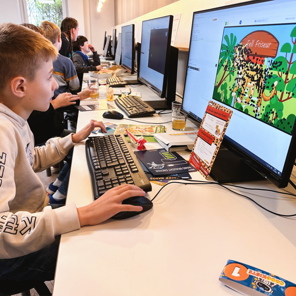 Die CodeKiste ist ein schrittweises Lernsystem, das es Kindern zwischen 6 und 14 Jahren ermöglicht, ohne Vorkenntnisse Programmieren zu lernen. Mit spannenden Apps und Spielen zum Nachprogrammieren ausgestattet, ermöglicht die CodeKiste Kindern, schon innerhalb der ersten Stunde ihre eigenen kleinen Spiele und Apps zu erstellen. Diese können sie dann später stolz mit Freund:innen und Familie teilen.