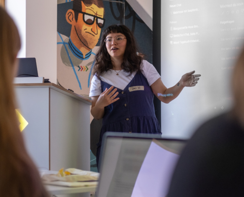 Nach einer kurzen Vorstellung, wer Micromata überhaupt ist, was wir so machen und welche Wege zu uns führen, ging es auch gleich in die Praxis über: Wie baut man eigentlich eine Webseite? Was können die geheimnisvollen Werkzeuge HTML, CSS und JavaScript? Und, ganz wichtig: Welche Rolle spielt KI bei all dem?