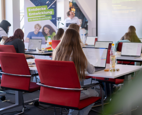 Am 23. April 2026 haben wir unsere Türen wieder für den Girls’ Day geöffnet und 13 jungen Mädchen Gelegenheit gegeben, das Berufsfeld der Softwareentwicklung einen Tag lang aus der Nähe kennenzulernen.