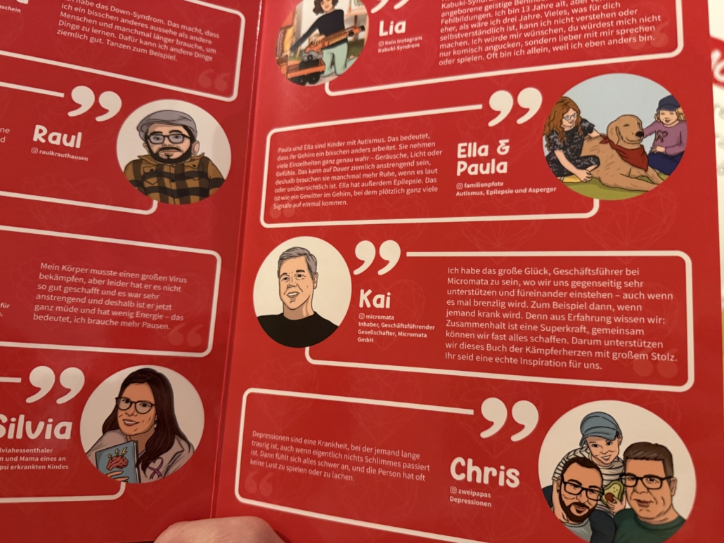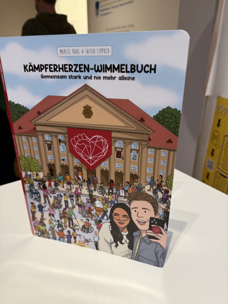Passend zum jährlichen Kongress Kämpferherzen in Kassel ist jetzt mit etwas Verspätung das gleichnamige Wimmelbuch erschienen, das u. a. auch dank unserer Unterstützung zustande kommen konnte. Darin geht es um Menschen, die mit chronischen Erkrankungen, medizinischen Besonderheiten und teils existenziellen Diagnosen leben und sich mutig ihren gesundheitlichen Herausforderungen stellen. Umgesetzt wurde es von unserem Freund und Partner Marcel Kahl aka Regenbogenpapi.